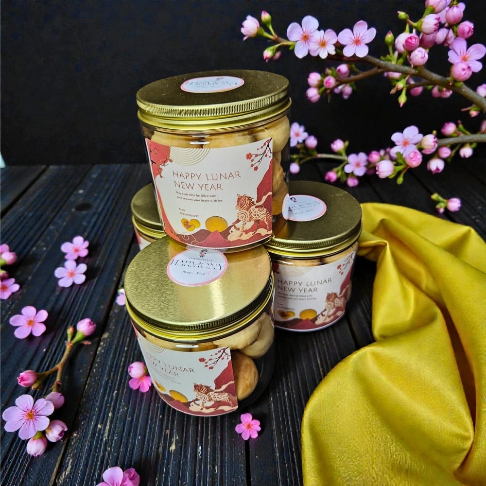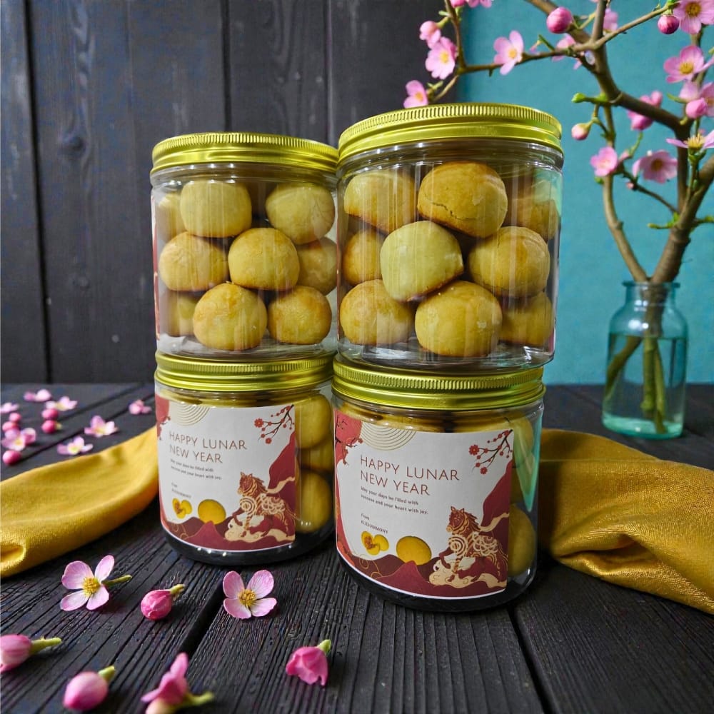Celebrate Chinese New Year with Kueharmony’s Prosperity Pineapple Tarts, a timeless favorite crafted to perfection. Each tart features a delicate, buttery crust that melts in your mouth, encasing a center of tangy, aromatic pineapple jam. The harmony of sweet and tangy flavors makes this classic treat irresistible.