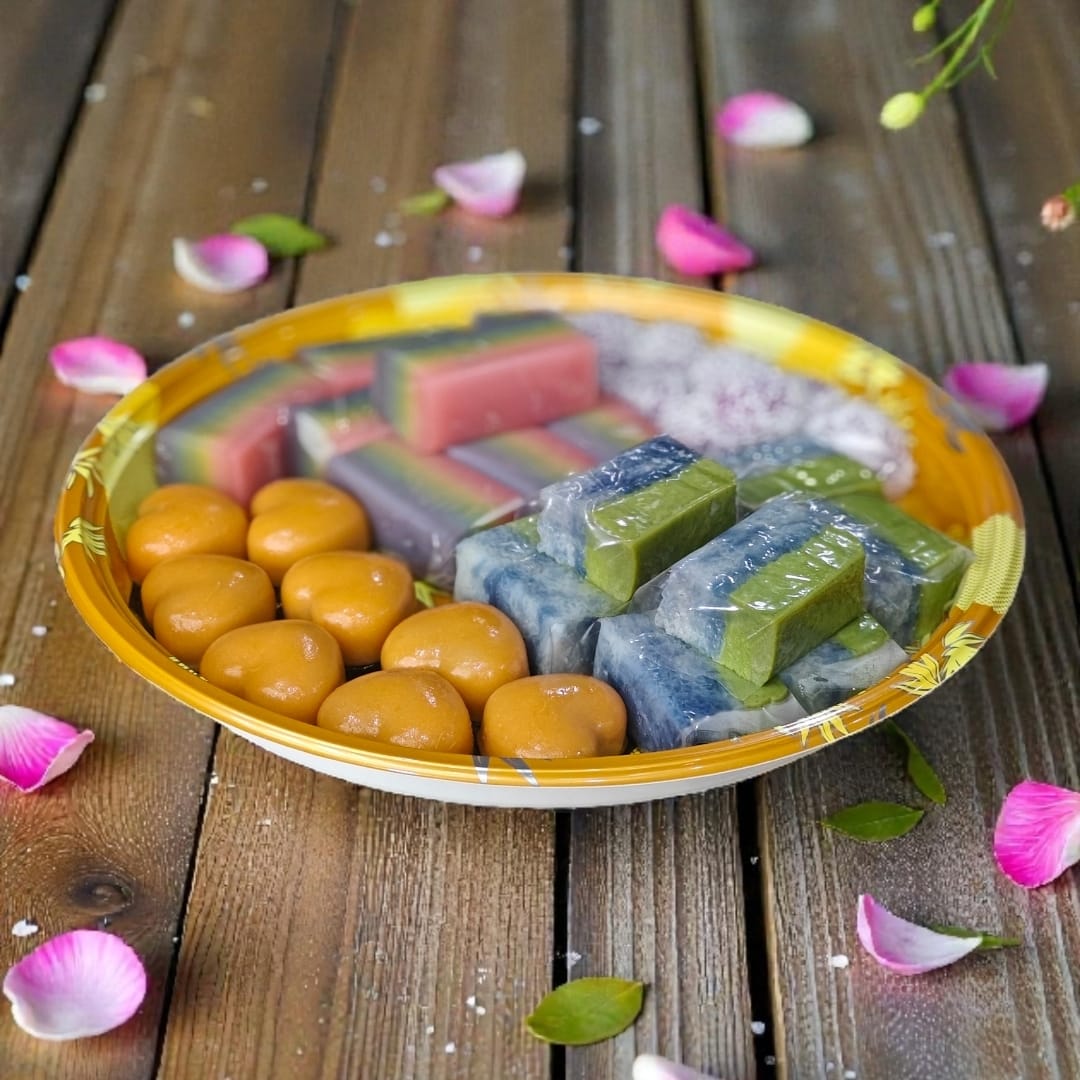 Premium Kueh Platter (Popular 32 Pieces) is a curated selection of Nonya kueh, designed to bring vibrant flavors and cultural charm to your gatherings by Kueharmony most enchanted platter.